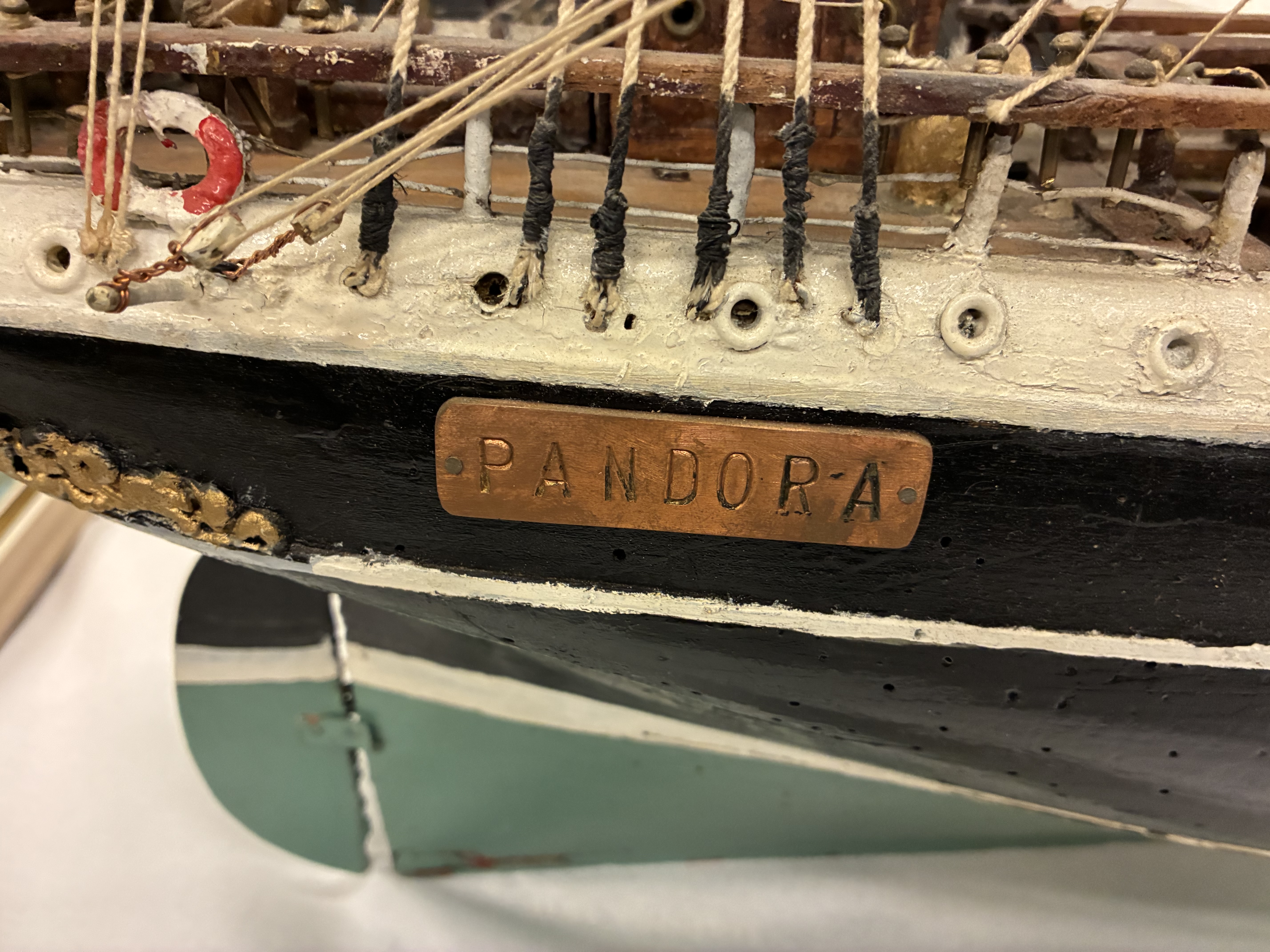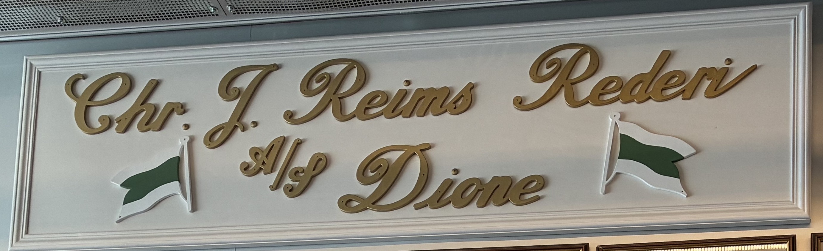 -Det er et fantastisk håndverk som er utført, med de utskårne bokstavene og rederiflaggene i tre, forteller Carl F. Schrumpf.