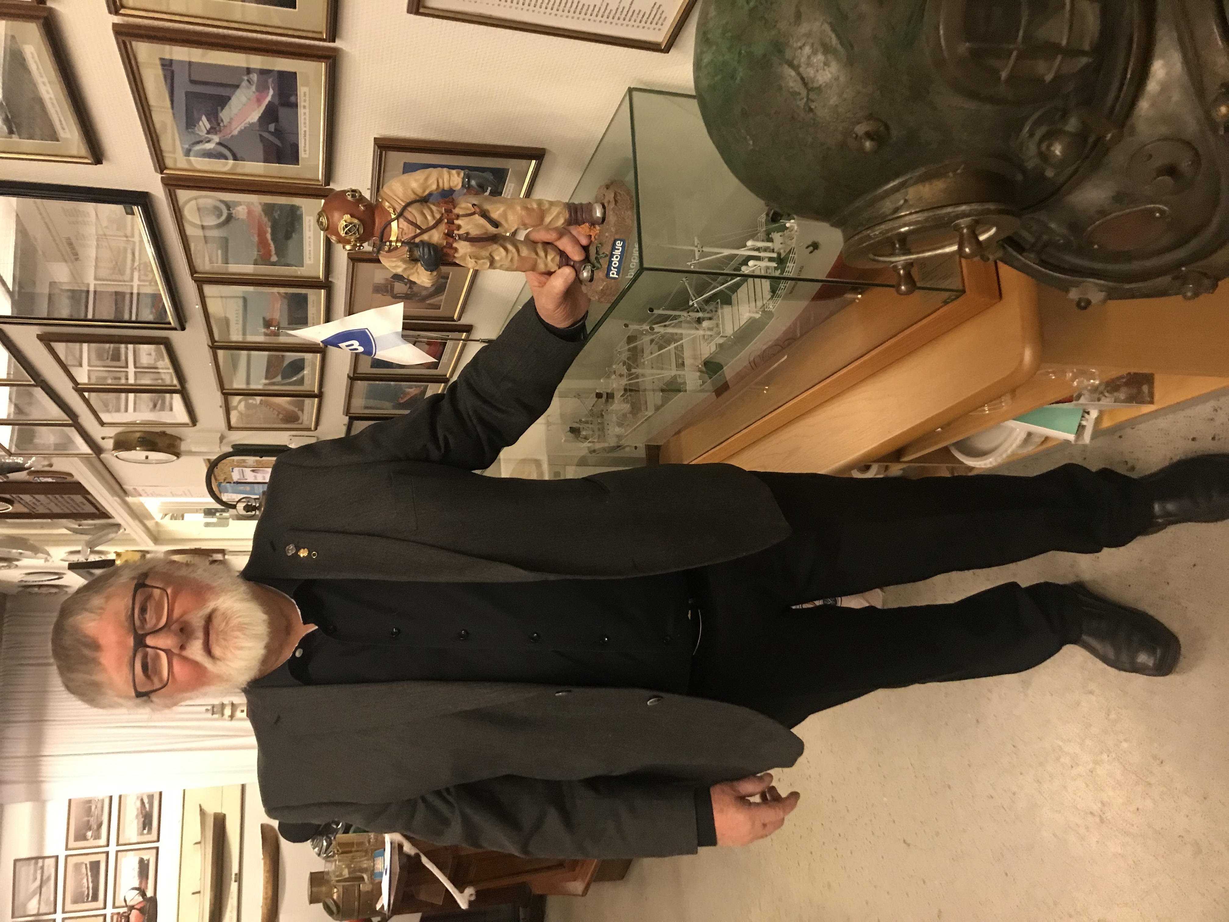 Anton Smith, still going, etter mange år som dykker i havets dyp. Han fortalte om sitt liv i et godt besøkt medlemsmøte 6. mars.
