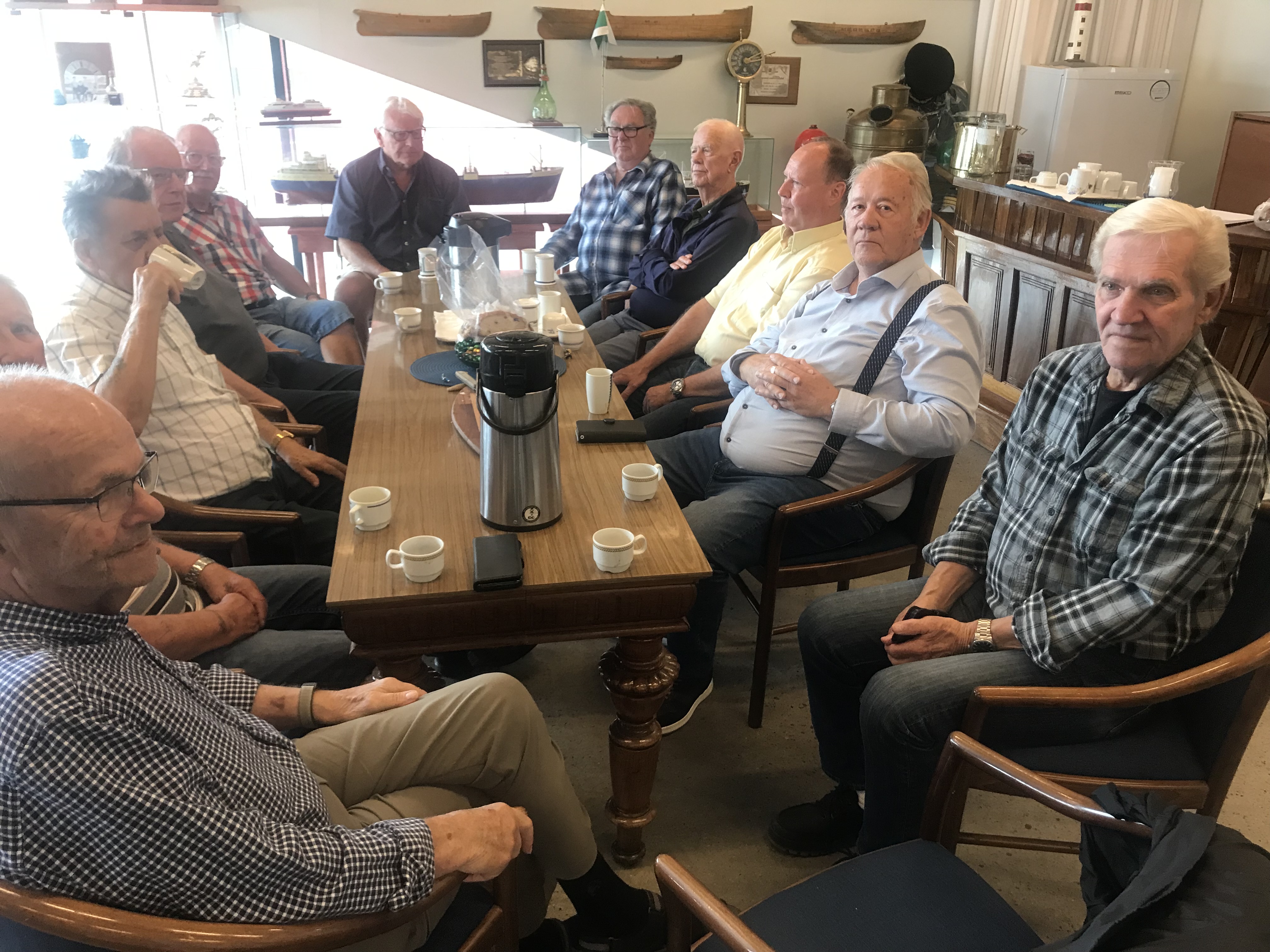 18 POS-medlemmer var på besøk i Gjeving. Foruten motorsamlingen, var det omvisning i Lyngørfjordens Kystkultursenter.