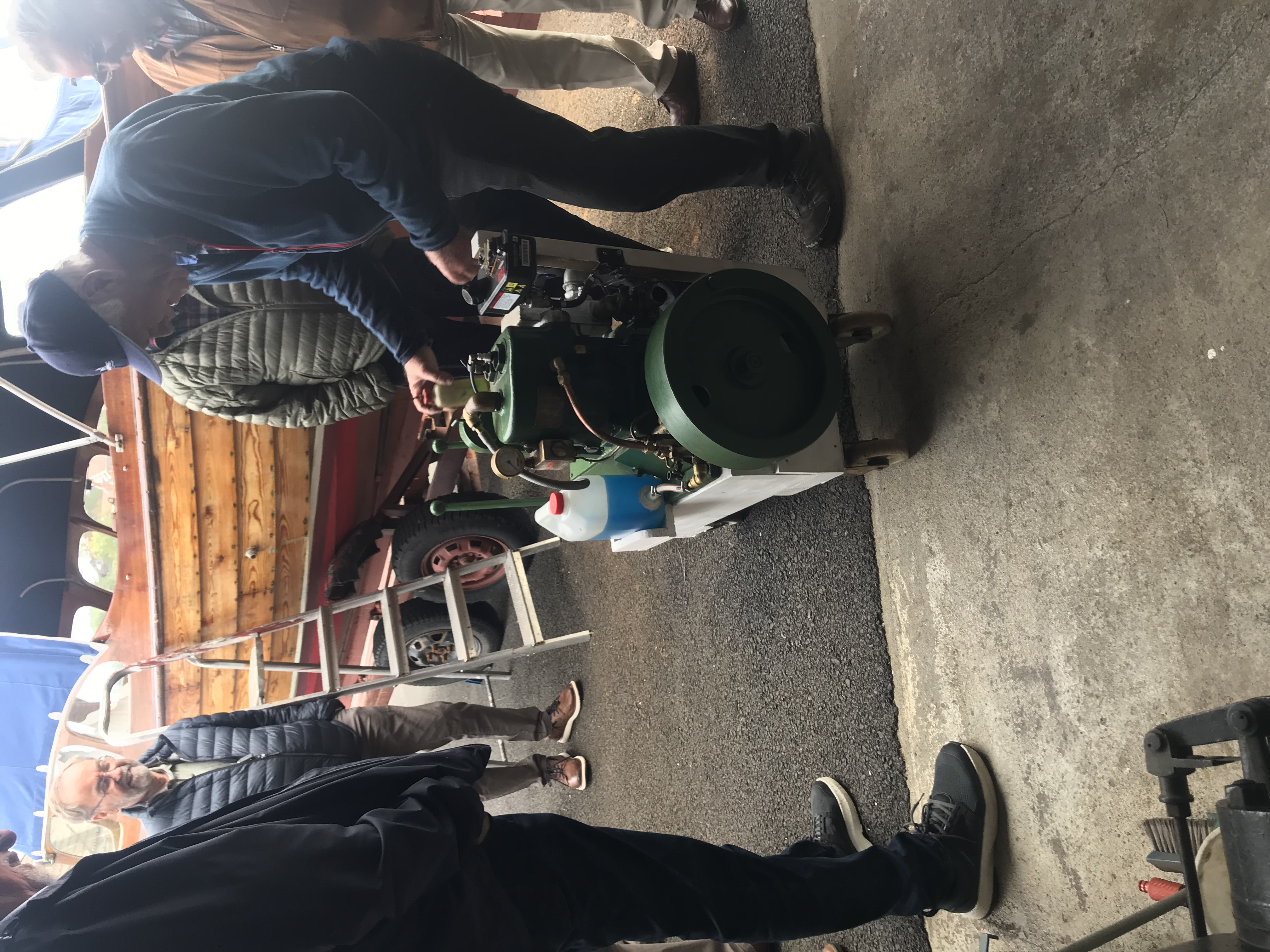 En par drammer og noen runder med sveiva. Så startet veteranmotoren, en Alda, i garasjeåpningen. Elling Marcussen viste entusiastisk den store samlingen av veteranmotorer. Inntil videre plassert i Marcussens to garasjer.