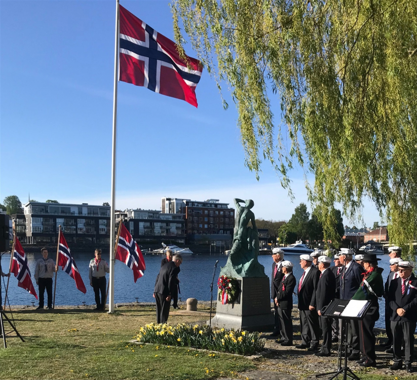 Som så mange ganger før var det Porsgrund og Omegns Sjømandsforening som sto for bekransningen av sjømannsmonumentet Skibbrudd på Vestsiden 17. mai 2022.